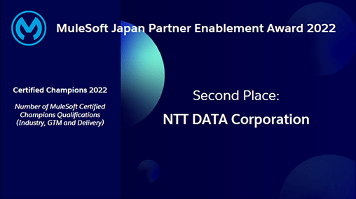 NTT DATAは、MuleSoft Japan主催の「MuleSoft Japan Partner Enablement Award2022」における2部門にて、国内No1のパートナーとして受賞しました。