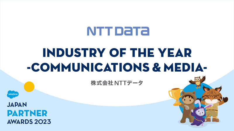 NTT DATAは、Salesforce Japan Partner Award 2023において「Industry of the Year <Communications & Media>」を受賞しました。