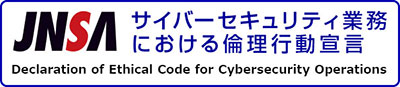 NTTデータは、特定非営利活動法人日本ネットワークセキュリティ協会(JNSA)が定める「サイバーセキュリティ業務における倫理行動宣言」に則って業務を遂行することを宣言します。