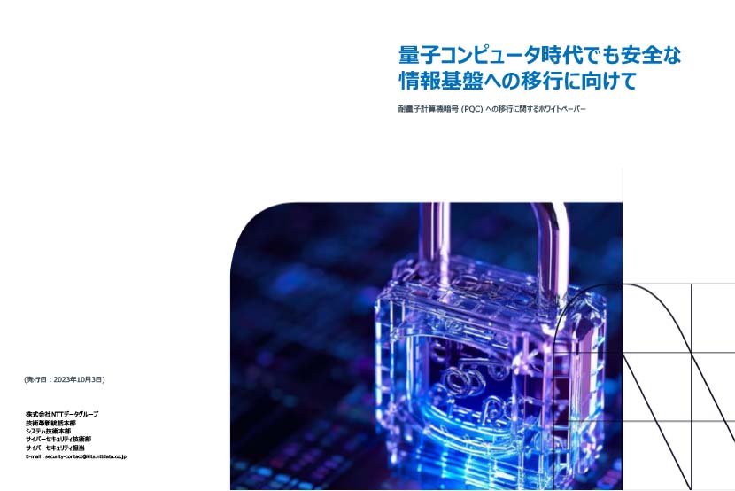 量子コンピューターは高速処理が期待される一方、暗号化データの解読が容易になる等のリスクから、普及への備えが世界中で進んでいます。NTTデータグループでは、米国NISTのPQC標準化動向を的確に把握し、お客さまのITシステムを耐量子計算機暗号へ移行する際の課題をともに解決します。