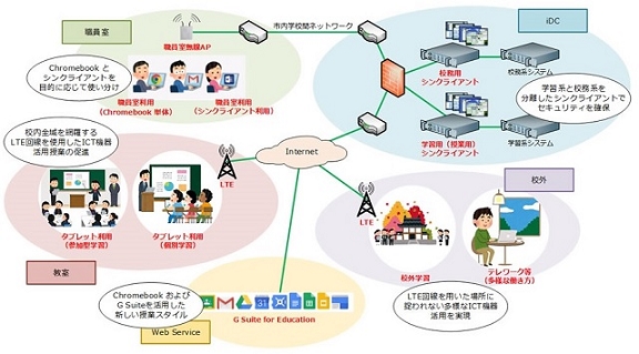 そこで町田市は、市内の公立小中学校全62校にタブレット端末とモバイルネットワーク、およびシンクライアント環境の新規導入を決定。2017年度は小学校・中学校各1校のICTモデル校に先行展開し、翌年度以降、市内全域に順次展開していく方針を打ち出した。