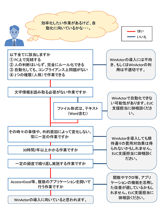ユーザー部門向けの支援サービスやRPAの適合度が分かる判断フローを提供