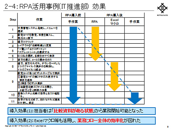こうした定型作業の効率化を図るべく、同社では2016年5月頃からRPAに関する簡易調査をスタートした。