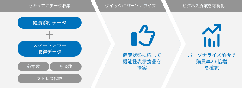健康データにもとづく商品レコメンドで商品購買率2.6倍を実現