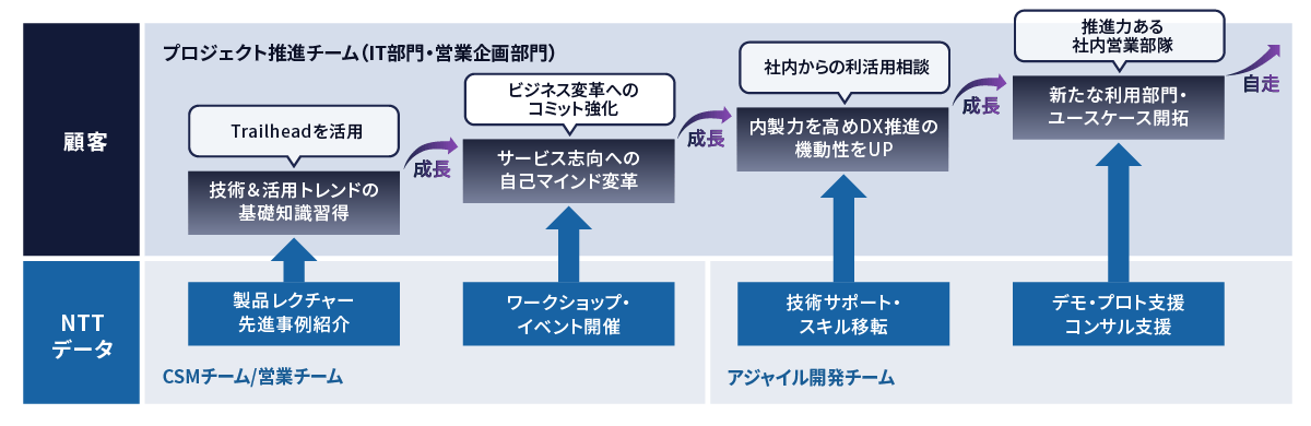 プロジェクトスタート当初のNTTデータによる全面サポートから、