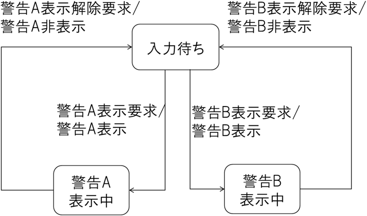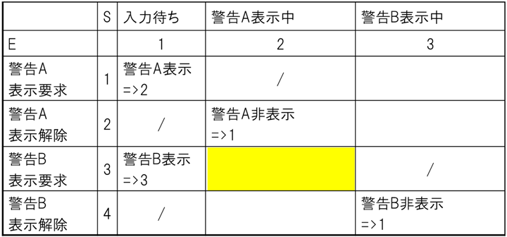 図4の状態遷移図と図5の状態遷移表は同じ振舞いを表す等価なモデルです。しかしながら、図5の状態遷移表の黄色く塗りつぶしたセルに注目してください。状態遷移表では「警告A表示中」に「警告B表示要求」が発生したらどうなるかを、空白セルで示すことが出来ます。この特徴により複雑化するHMI仕様で漏れ抜けを防止します。さらに、空白セルを示す部分はまだ未定義であることを明示しながら、インクリメンタル型プロセスとして開発を進めることができるメリットがあります。多くの機能の調停を行う車載コックピット開発において、全てを定義しないと次に進めないウォータフォール型プロセスは適していません。