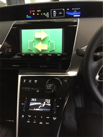 多種多様な警告や情報を取り扱うために、自動車に搭載されるディスプレイがインチアップしており、最近の高級車では12.3インチの液晶パネルが搭載されています参考1。iPad Air3が9.7インチ、iPad mini3が7.9インチであることを考えると、現在の自動車に搭載されたディスプレイがどれ程多くの情報を扱えるが分かります。図1は、筆者がトヨタ会館参考2で撮影したトヨタ自動車の水素カー"MIRAI"のコックピットです参考3。上中下段と3つのディスプレイを持ち、中央のディスプレイは9インチの車載通信機パッケージです。また、最近では、液晶ディスプレイの他に、フロントガラスに画面を投影するHUD(Head Up Display)といった表示装置があります。