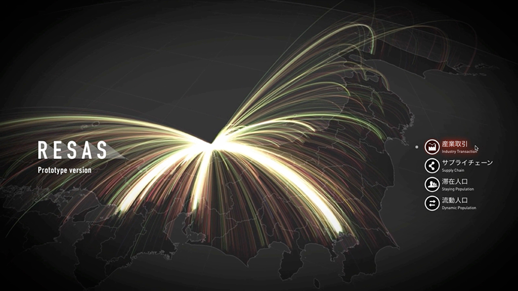 「RESAS」は、地方創生の場面で実行可能な施策やプランをつくるためのオープンなWebサービス。新型交付金(地方創生推進交付金)に基づく計画を立てる際、ファクトベースのマイルストーンとしてKPI(重要経営指標)を設定するときに役立てられている。