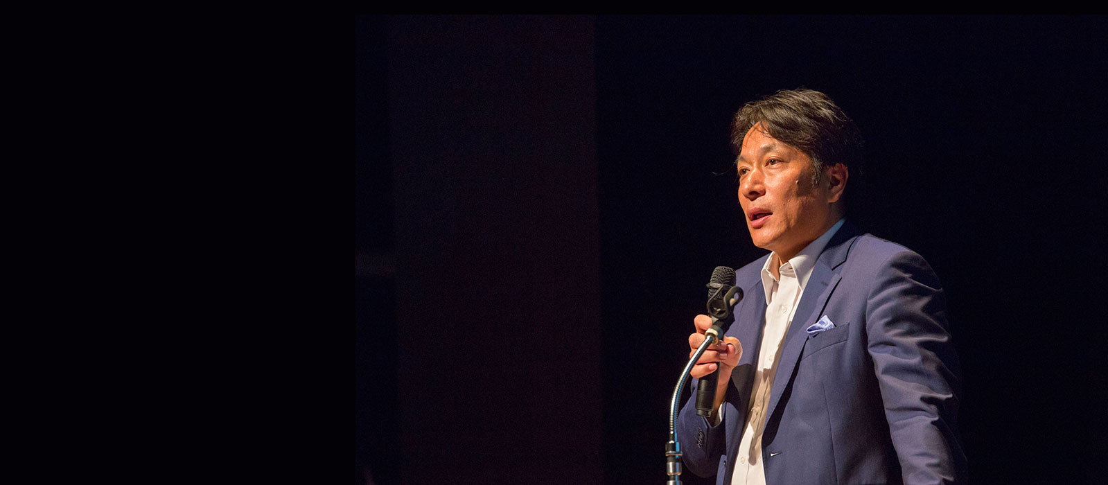 万雷の拍手の中、颯爽とステージに登場した青山学院大学陸上競技部の原晋監督。まずは“伝説の営業マン”と呼ばれたサラリーマンから青学陸上部の監督に就任するまでの異色の経歴について語り始めました。