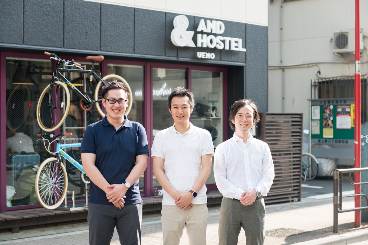 建物入口で出迎えてくれたのは&AND HOSTEL UENOのブランド責任者を務める、茶置貴秀(ちゃおき・たかひで)さん。ホステルをプロデュースするand factoryは、もともとエンターテインメント系のアプリ開発を手がけています。そのため、同施設で用いるアプリを独自開発できる強みがあるのです。