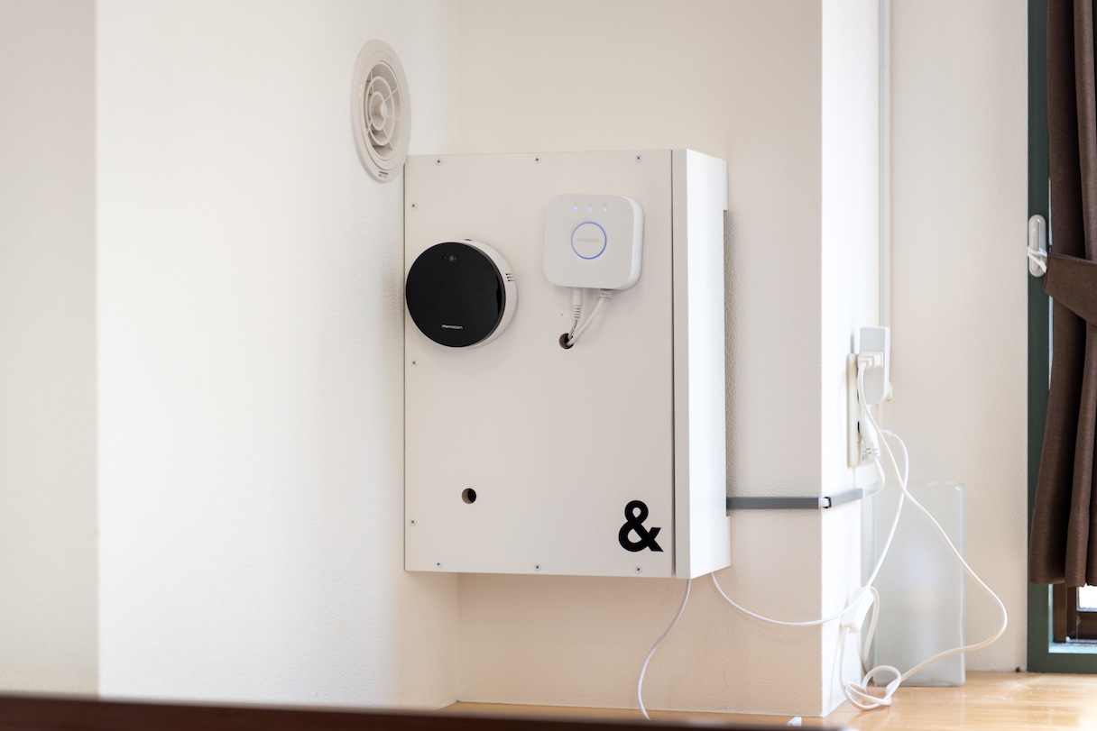 茶置 現在のIoT機器は一般住宅の規格に合わせて設計されていますから、宿泊施設のような場所に使うのはいわば後付けで、少し無理をして設置している部分もあります。特に電源周りは煩雑になりがちで、独自にボックスをつくるなどで対応しています。
