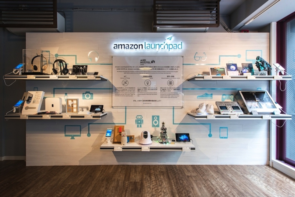 リビングにある「Amazon Launchpadストア」ショーケースでは、宿泊者がIoT機器を自由に手に取って見ることができる(提供:and factory)
