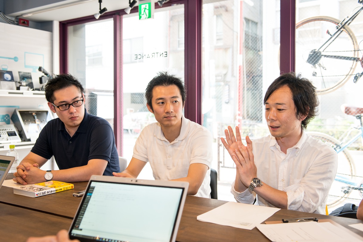 施設に伺った3人は、NTTデータ技術開発本部の研究者。『絵で見てわかるIoT/センサの仕組みと活用』(※1)の著者でもある小島康平、小山武士、河村雅人です。