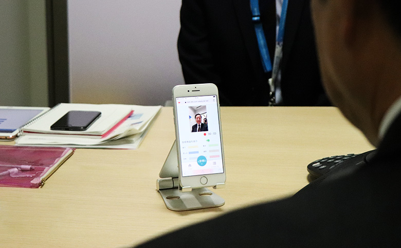 システムの仕組みを聞いた後、実際にトライアルに挑む。早速、スマホのブラウザを立ち上げ、好感度たっぷりに、と自分に言い聞かせながら30秒程度会話を撮影する。やはり最初とあって緊張してしまったかな、と振り返ろうとするも、そんな余裕もなく瞬時に分析結果が表示された。