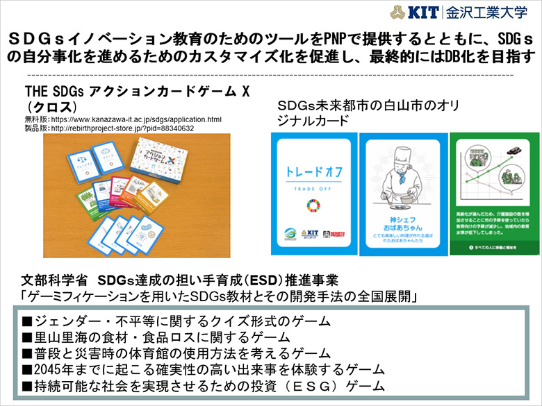 平本金沢工業大学では、SDGsに関するアクションを楽しみながら創造できるカードゲームを開発しています。
