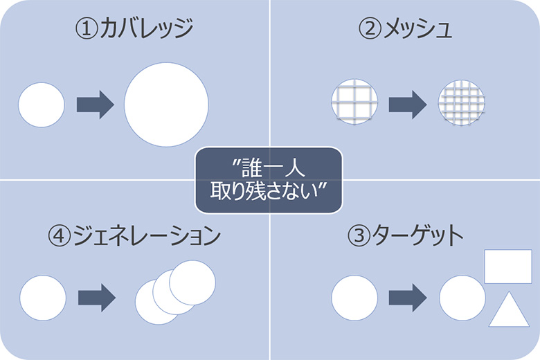 金田最後のテーマ、デジタル技術による「誰一人取り残さない」への対応に移ります。4つのパターンを紹介します。