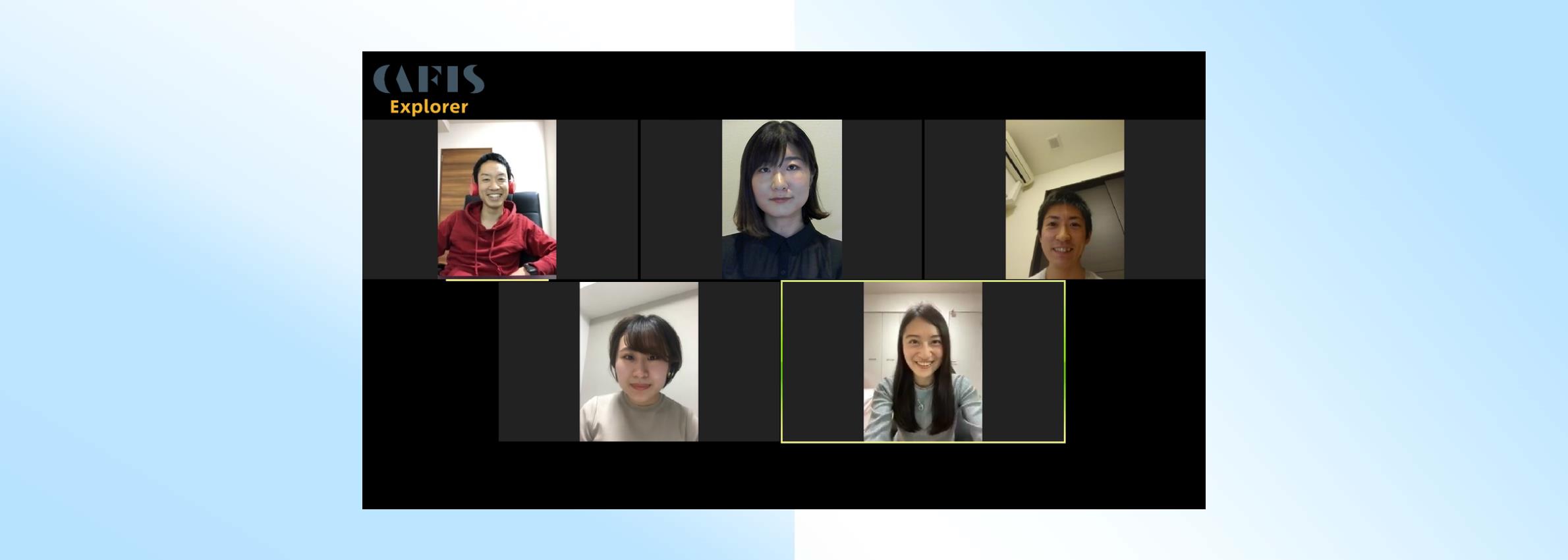 左から順に青島宇佳、川岡貴廣、田中絵里菜、田原将也、福井愛里