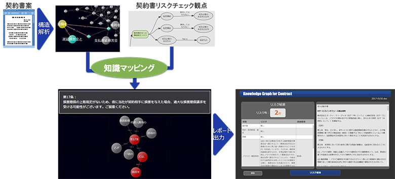 まずは、ナレッジグラフ技術の活用方法について、当社が取り組んでいる契約書リスクチェックを例にご紹介します。