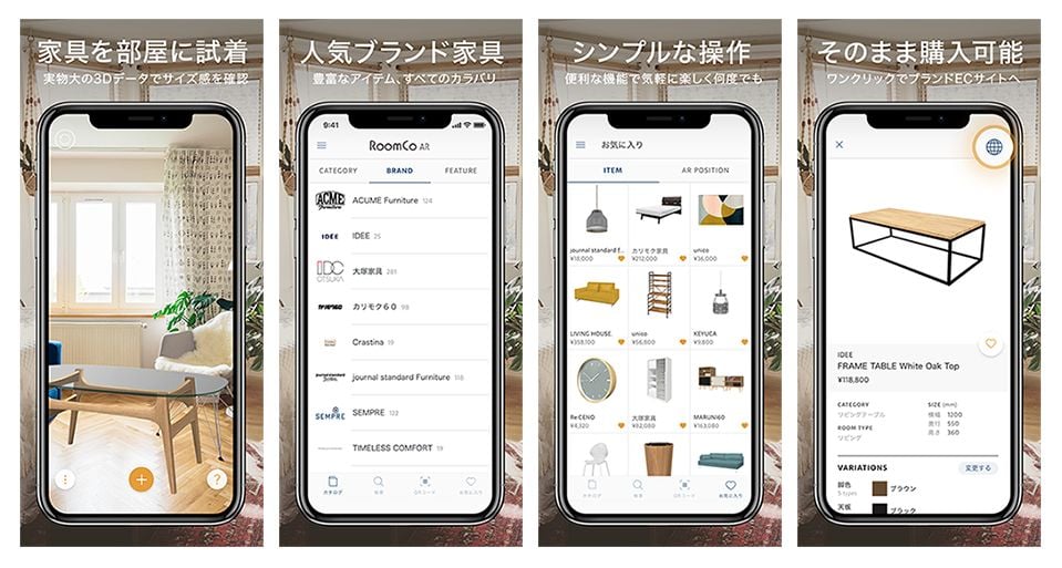 ARを活用した家具の試し置き「RoomCo AR」では、ECサイトではわからない製品の実物感や、実店舗ではつかみにくい設置イメージが確認でき、EC・実店舗の弱みを解消している点が大きな特徴です。