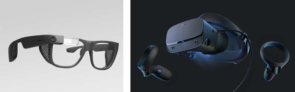 出典(左):「Google Glass」新モデル、大幅アップデートし999ドルで発売へ(https://www.itmedia.co.jp/news/articles/1905/21/news056.html)