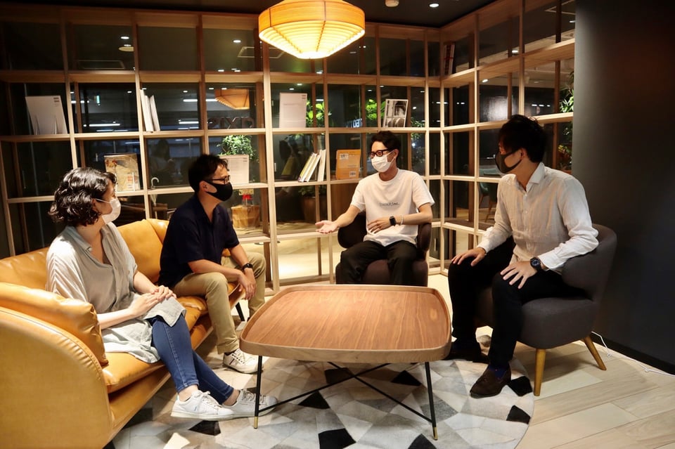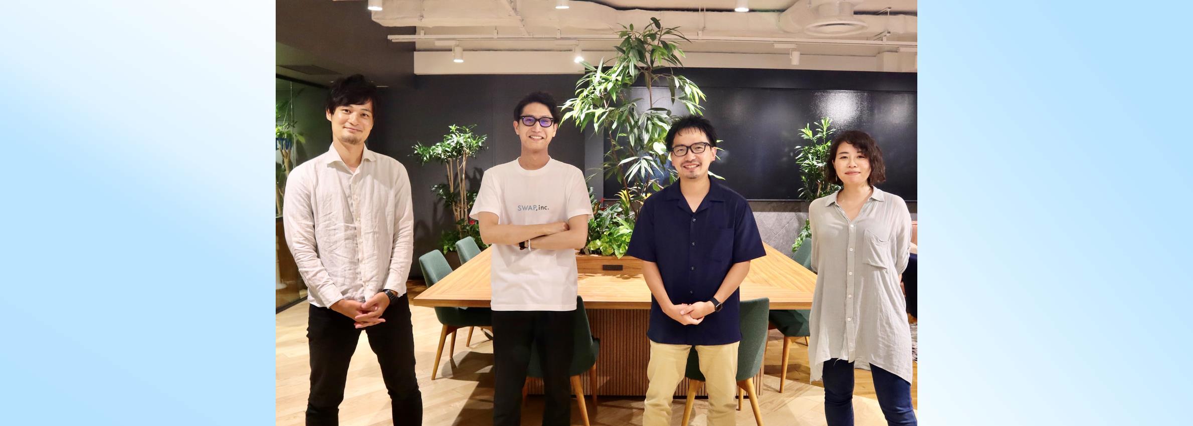 インタビューの様子 左から田端さん、田邉さん、Swap社 藤沢さん、堀越さん