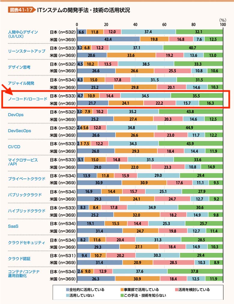 図1:ノーコード/ローコードツールの活用状況(「DX白書2021」(※1)より引用)