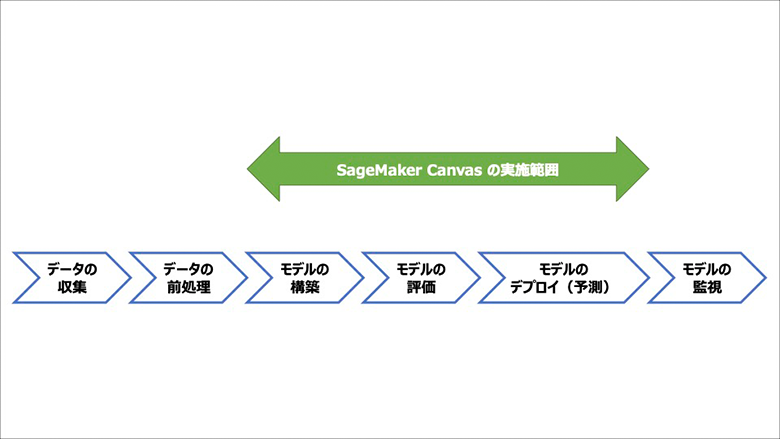図4:機械学習ワークフローとSageMaker Canvasの実施範囲