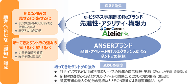 当事業部が提供するミッションクリティカル決済サービスANSER®を、よりスピーディーに、より創造的に、魅力があるサービスへと進化させていくエンジンがOpenCanvas Atelier®です。ANSER®がこれまで培ってきた社会インフラサービスとしての安心安全なサービスを軸にOpenCanvas Atelier®の先進的なアジリティを掛け合わせることで、より豊かで調和のとれた社会の実現に貢献していきます。