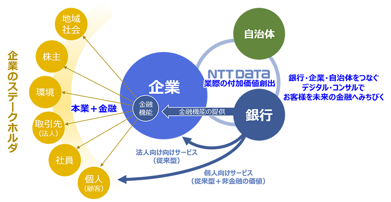 OpenCanvas Atelier®では、「企業が従業員や、取引先、顧客、地域社会などステークホルダーの利益に配慮すべき」というステークホルダー資本主義の価値観が原動力となり、非金融を通じた金融と非金融の相互連携が今後の金融サービスのビジョンだと考えています。