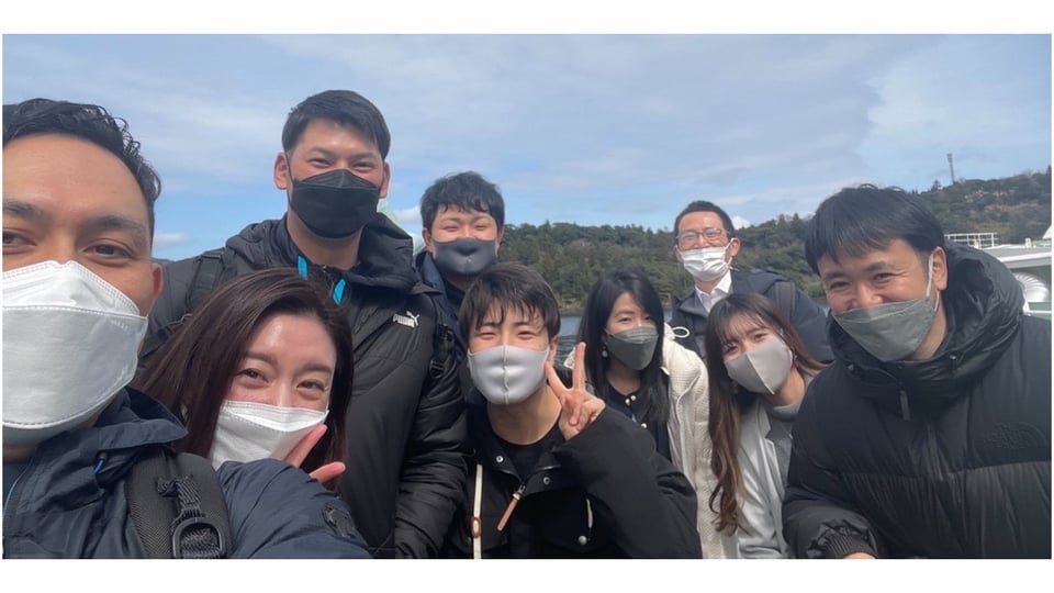 左から:デロイトトーマツコンサルティング久古さん(元プロ野球選手)、デロイトトーマツコンサルティング若林さん、元プロ野球選手鵜久森さん、デロイトトーマツコンサルティング柘野さん、NTTデータ林(執筆者)、NTTデータ荒さん、海士町役場久保さん、村松さん、デロイトトーマツコンサルティング大村さん(当時)