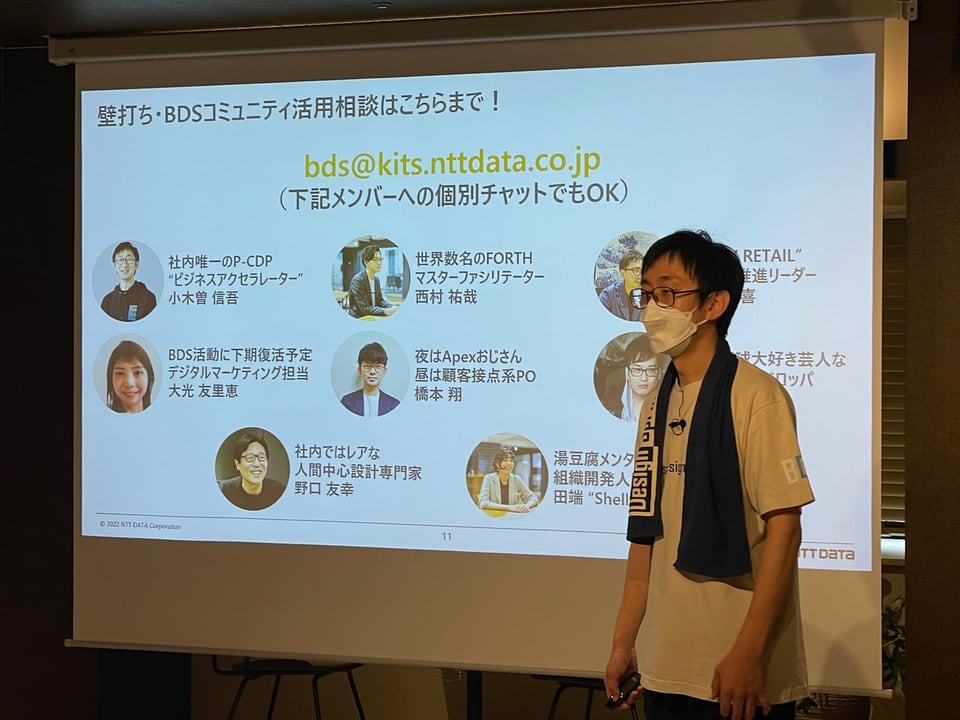 今後、今回の盛り上がりをコミュニティに活かすことはもちろん、BDS・BDSコミュニティどちらもNTTデータの外とのつながりをたくさん作っていきたいと思っています。今回の記事から何か近しいものを感じた方は、お気軽にご連絡ください!
