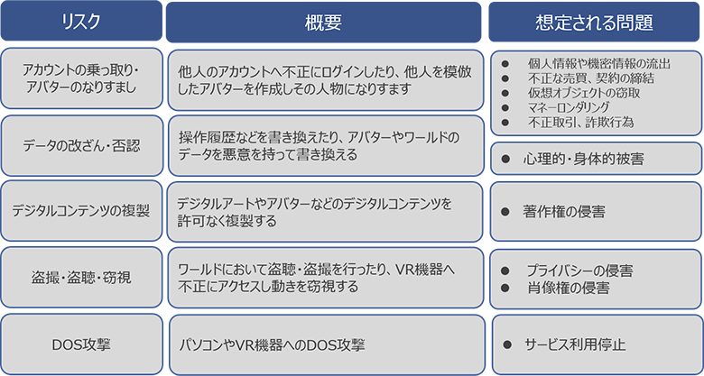 表:メタバースにおけるセキュリティリスク