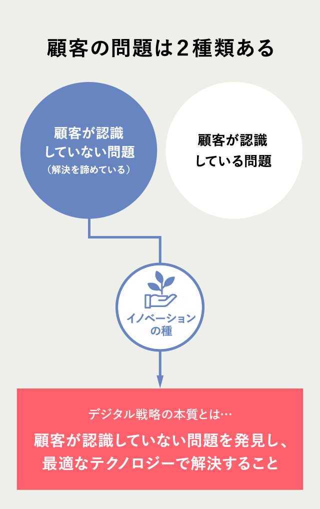 そうやって顧客が解決を諦めてしまっている課題、あるいは顧客自身が認識していない課題に着目し、デジタルテクノロジーを活用して解決する。それがあるべきデジタル化の進め方です。
