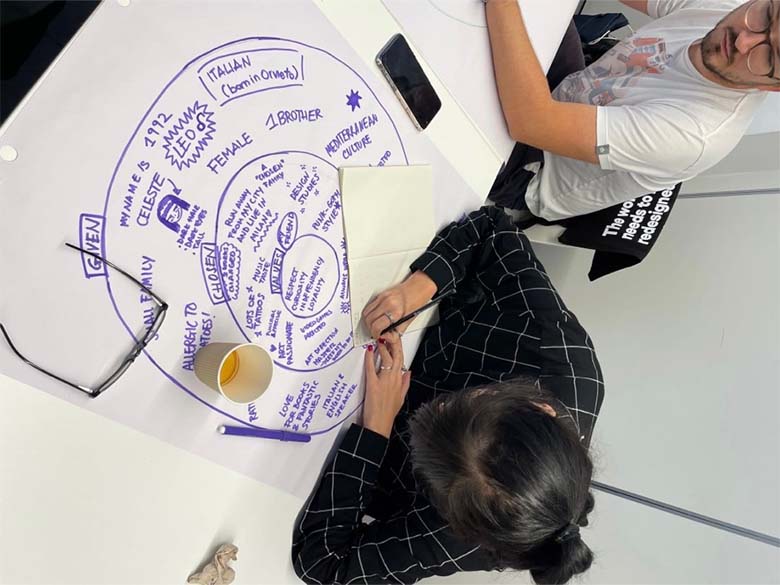 このワークの根底にある考え方として、私たちデザイナーは日々、自分とは全く異なる背景・価値観を持つ人と協力し、分野を越えた橋渡し[Building bridges]を担うこともあります。こうした垣根を超えてコラボレーションを実現するために、まず自分を知って心を開き、お互いの共通点を見出す、境界を超えるリーダーシップが不可欠なのです。