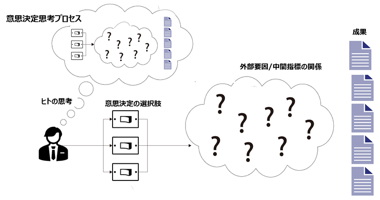 データサイエンスの先端技術であるAI/MLは、優れた予測結果を出力するコンポーネントです。しかし単独のコンポーネントによる予測結果だけでは、複雑な要素が絡み合った事象に対して適切な判断を下すには限界があります。最善な意思決定を実施するためには、AI/MLや人、システムといった意思決定に関わる一連のコンポーネント間の相互作用を洗い出し、因果関係を踏まえ、選択肢を求め、いずれかに決定するというプロセスが重要となります。