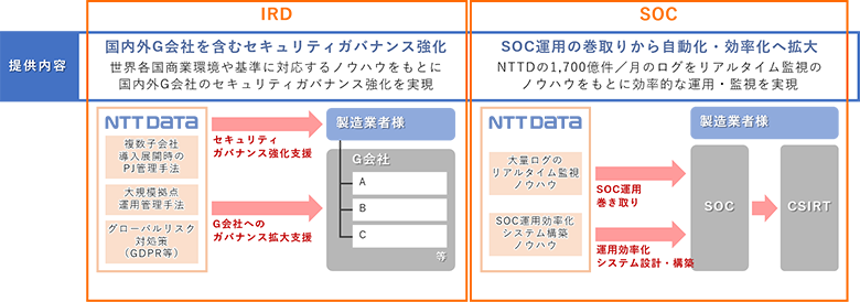 この課題を解決するため、NTTデータは、CSIRTaaSの「IRD」と「SOC」サービスをお客さまに提供いたしました。(図5)