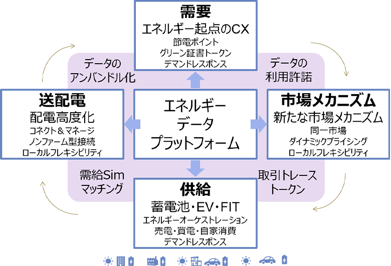 こういった方向性に進むことを考えると、データのプラットフォームは上図のようになると考えます。供給側であるアグリゲーターや蓄電池の話、配電高度化の話、需要側ではGDBLのようなデータ活用の話、そして、市場メカニズムの話があります。これらを有機的に結んでいくデータのプラットフォームをアンバンドルに用意していくことが必要になってくると思っています。