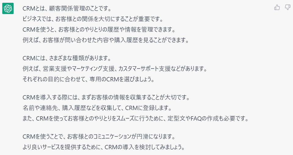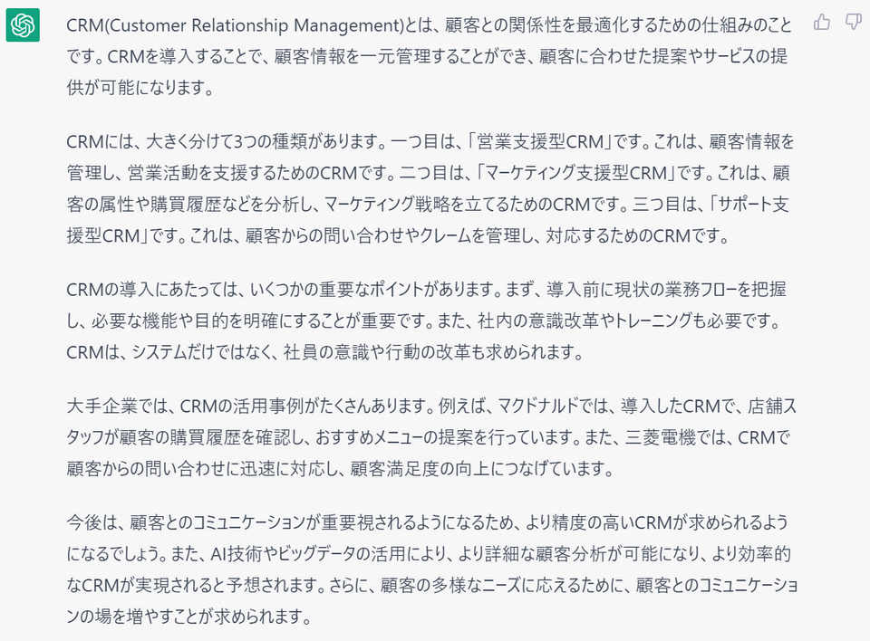 ChatGPTによるCRMの解説文(2023年3月9日現在)