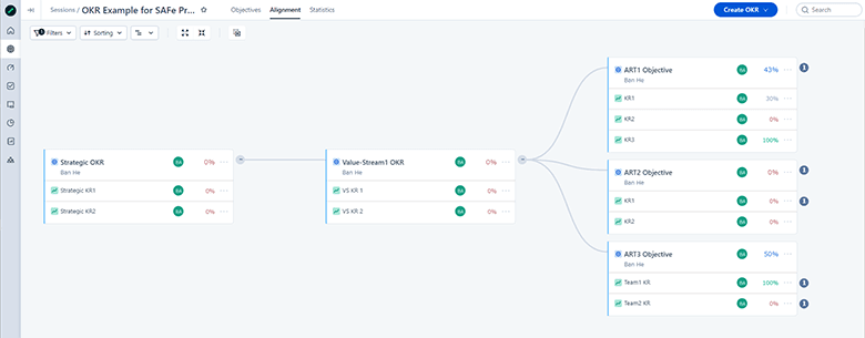 また、各階層間のOKRを関連付け、定期的な確認と見直しを行うことで、目標の整合性や透明性を高めることができます。