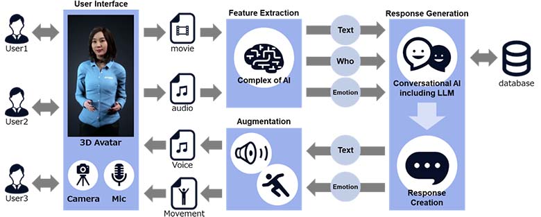 デジタルヒューマンは、人間との対話を再現するために以下のような機能を備えています。