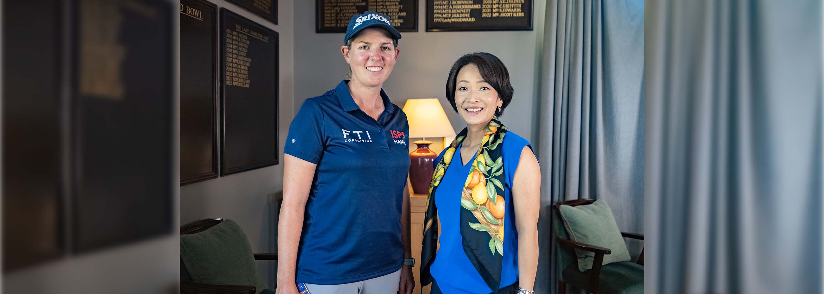 エピソード3では、AIG女子オープン2022年大会優勝者のアシュレー・ブハイとNTTデータグループ社杉山恭子が対談を行いました。ゴルフ界とITビジネス界という異なる分野で活躍する二人が、グローバルでの挑戦、仲間とのチームワーク、難局で落ち着いて対処するための心がけについて語りあいました。