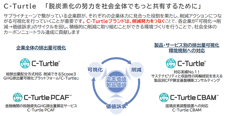 EU規制に対応する「C-Turtle CBAM」と金融機関向けの「C-Turtle PCAF」