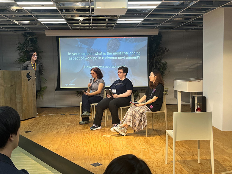 2つ目のテーマ、世界各国で活躍している女性エンジニアについては、女性のAWS Ambassadorによるパネルディスカッションを中心に意見交換しました。NTT DATAには、女性のAWS EMEA Ambassadorが2名在籍していますが、これはAWS Ambassador Communityから見ても高い比率です。欧州で活動する彼女たちはどのような経験をしてきたのか、世界各国で活躍している女性のクラウドエンジニア視点から、各国で抱える共通の課題やその解決方法について、日本の事例を交えディスカッションし、AWS Japan Ambassadorと対談を行いました。特に女性エンジニアがさらに輝ける職場にするために、国・社会制度・組織・所属チーム・家族・個人が何をすればよいか、多くの示唆がありました。