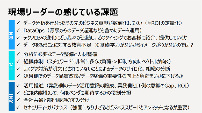 村山は、企業価値を生み出すデータ活用について、「ビジネス部門からのニーズがなければ、良いものはできない」と語り、このように総括した。
