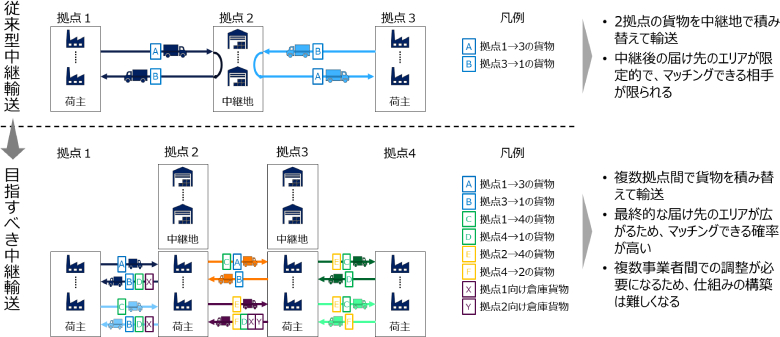 サプライチェーン全体で進めるべき物流の効率化において、「中継輸送」が鍵を握ることは先に述べた通りだが、具体的にどのような方法を構想しているのか。