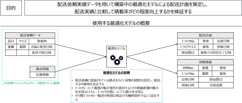 図4:三井倉庫ロジスティクスとの配送最適化モデルの構築・机上検証