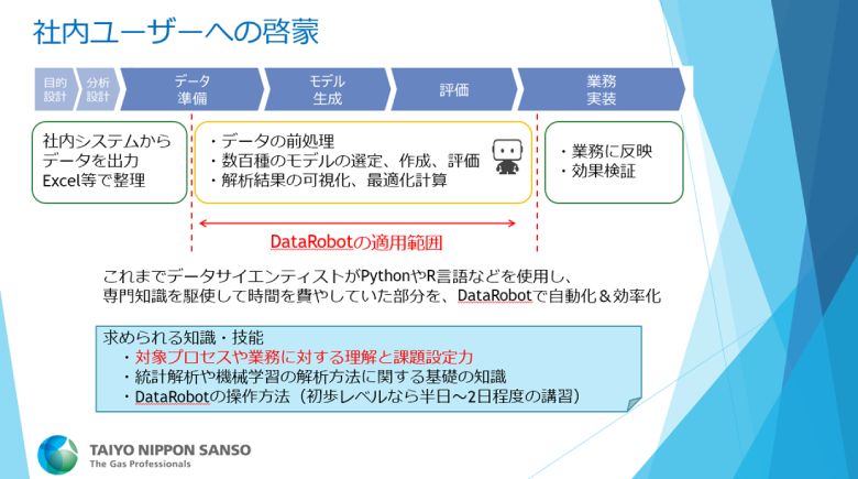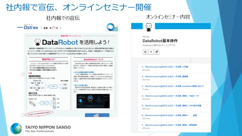 そして2022年4月、大陽日酸でのDataRobot活用が一気に加速する。きっかけは、デジタル技術で業務変革を支援するDXセンターが設立されたのを機に、ユーザー無制限の契約に移行したことだ。