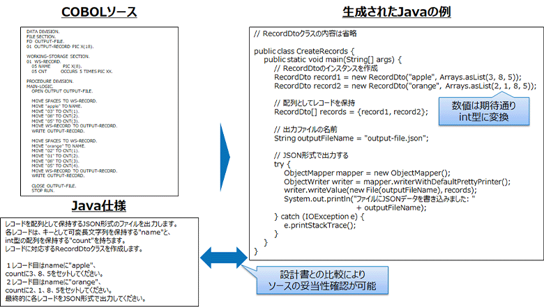 チェックを行うためには、Javaに沿った設計書を作成した上で、設計書とソースを比較する必要があります。本記事では、COBOL仕様からJava仕様への変換の方針であるJava再設計指針を用いた「PureJava」なソースの生成方法について、COBOLとJavaの特徴の違いに注目して解説します。