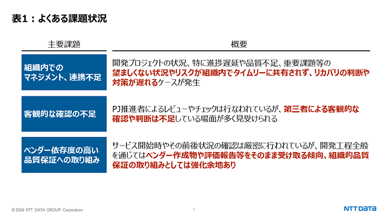 しかし、下表1に例示するような課題を抱えるケースが多く見受けられる実態があります。