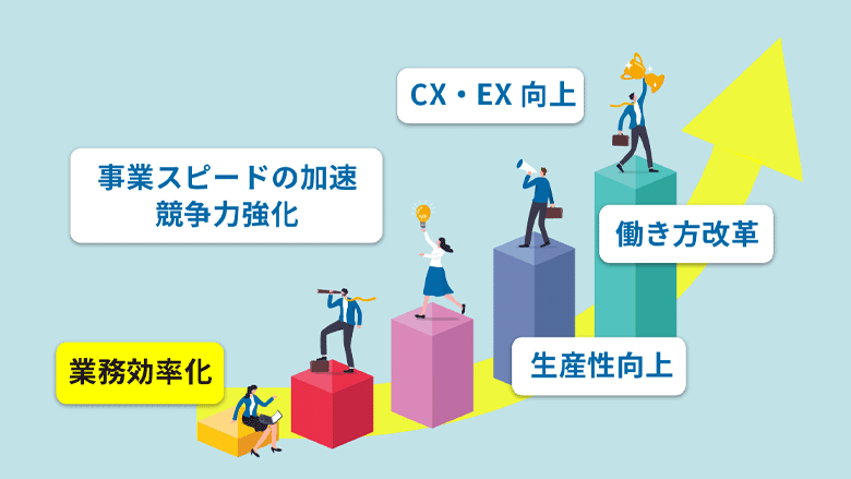 ・事業スピードの加速、競合サービスに対しての競争力強化業務効率化による事業の加速化は、市場環境の変化への対応力を高め、顧客のニーズを汲み取った新たなサービスをスピーディーに提供することにつながります。またサプライチェーンにおけるコスト削減は、商品やサービス価格の適正化も実現します。